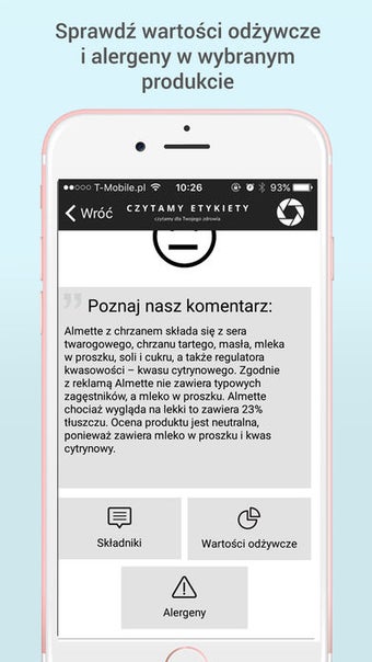 Czytamy Etykietyto darmowy program na iPhone'a, który wpisuje się w kategorię „Food & Drink” .
